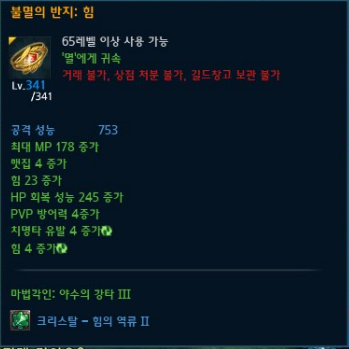 반지의 경우 치유4 힘4를 고르는게 일반적입니다.