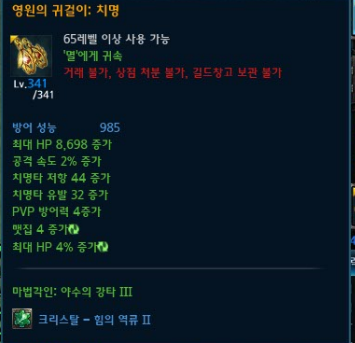 옵션은 힘5,치유9,공속2.25%증가 대부분 딜러들이 다 고정입니다