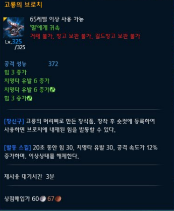브로치도 동일하게 옵션은 치유6 힘3으로 골라주시면 됩니다.