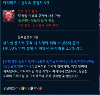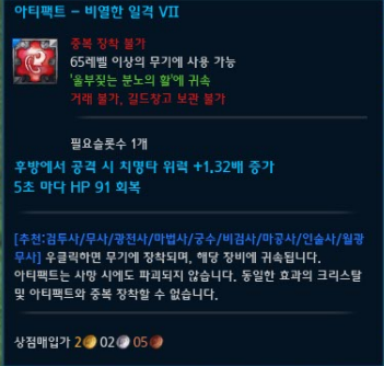 * 무기 장갑 각인서를 쌍강타 사용시 이 문장이 훨씬 효율이 좋습니다.