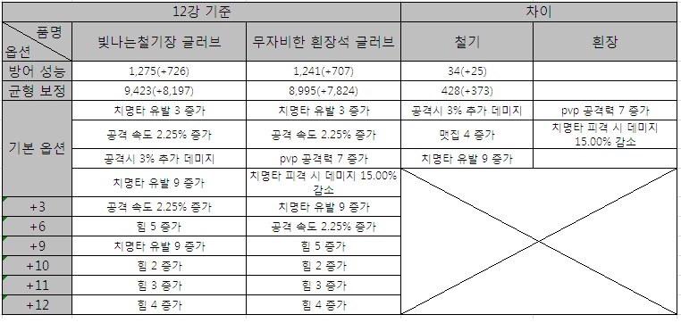 12강 글러브 비교표
