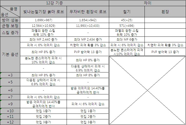 빛나는 철기장 옵션