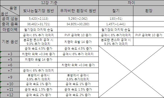 12강 원반 옵션 비교표