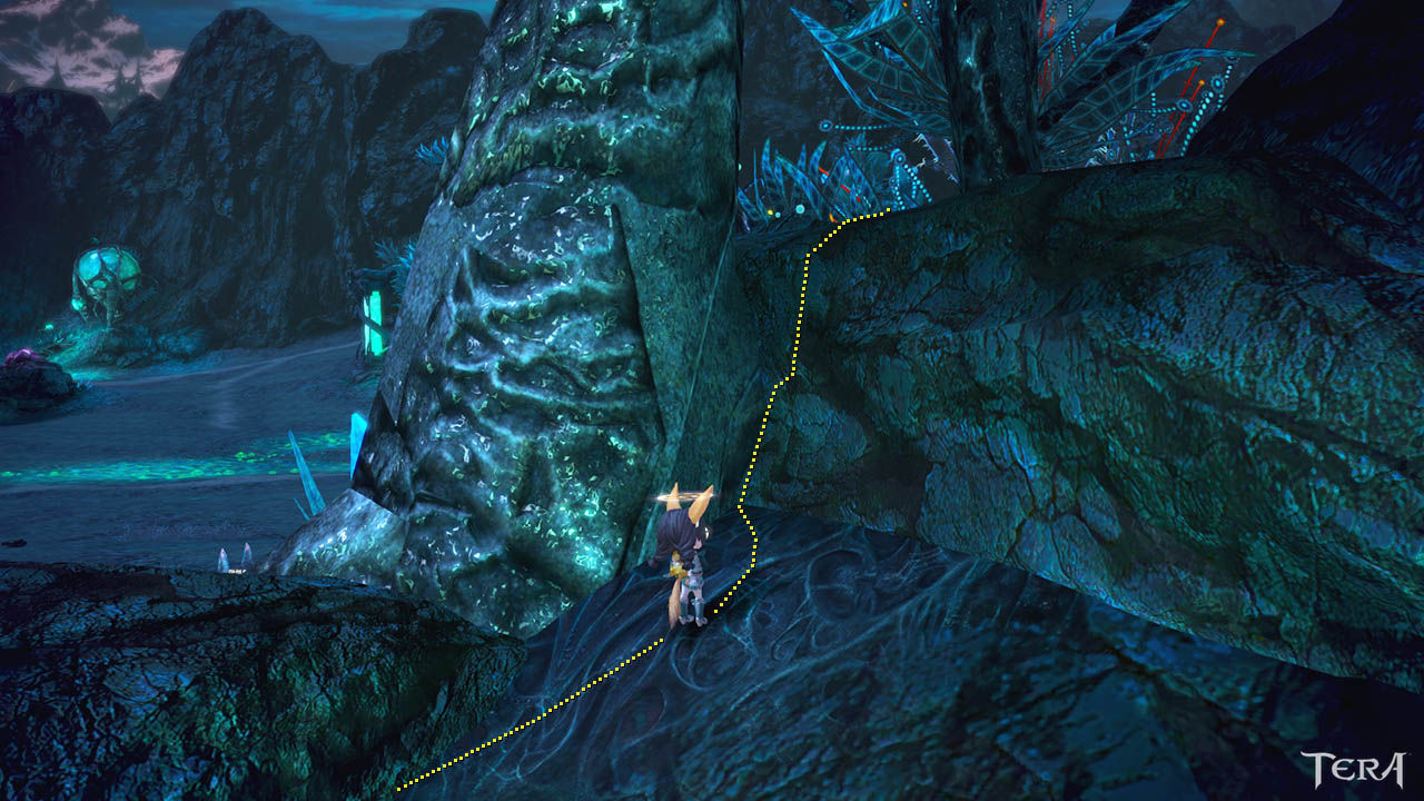 어느 정도 올라와서 우측 바위부분은, 틈새 구석에 완전히 붙어서 바위에 대고 점프하다보면
