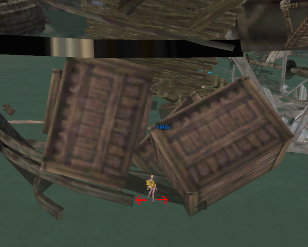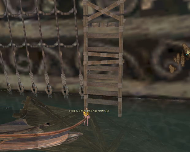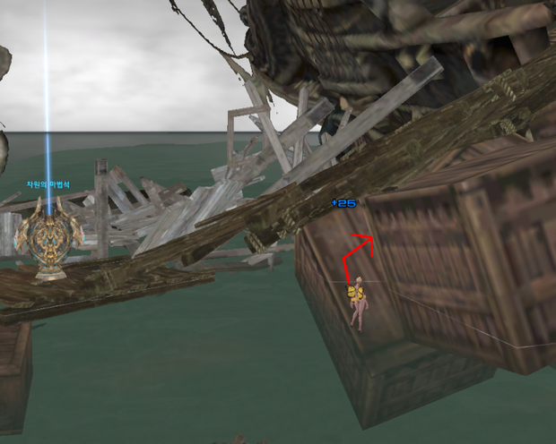 뒤로 건너온뒤 수영상태에서 앞으로 조금 다가서서 올라서면 기합/고함/질주등 스킬을 사용하며 좌우로