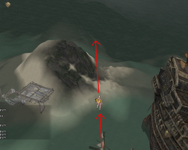 반듯이 섬을 내캐릭 좌측에 두고 직진하세요..