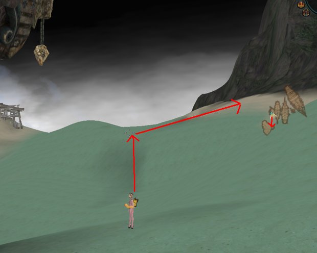나무탑을 등뒤에 두고 화살표 경로로 등산을 한다.. 그냥 전진 점프만 할시에는 등산을 못합니다.