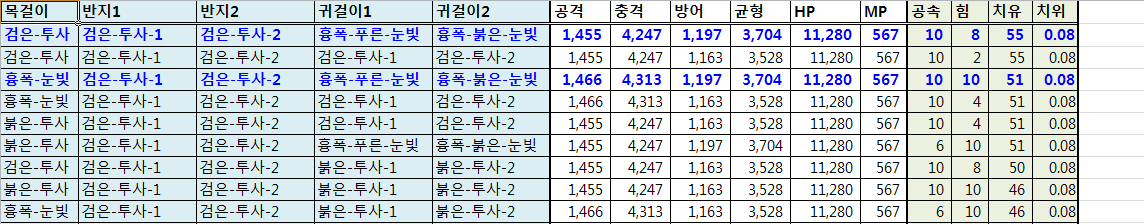 2) 반지1: 흉폭-푸른-눈빛 <--- 새 5인 던전 드랍