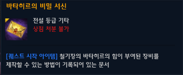 ▲ 빛나는 철기장으로 제작 가능한 도안을 얻을 수 있는 퀘스트 아이템인 ‘바타히르의 비전 문서’