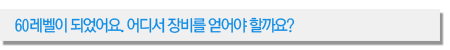 그래서 오늘은 처음 60레벨을 달성하신 분들에게 도움을 드리기 위해