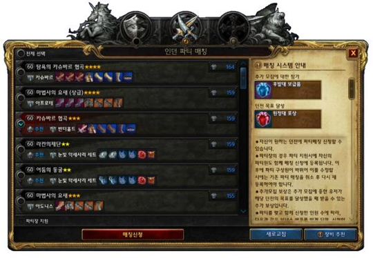본래의 기능을 되찾고 더 편리한 기능을 제공하기 위해, 인던 파티 매칭 UI에 ‘추천’ 인던이 표시되도록 하거나,