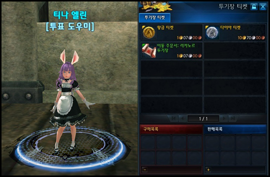 ▲ 투기장의 상점과 투표를 도와주시는 엘린느님! 티켓과 이동 주문서는 이곳에서 구매하시면 되겠네요!