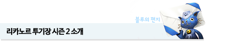 자, 지금부터 이 블루와 함께 더 강해진 리카노르 투기장 시즌 2를 미리 만나보러 가보실까요?