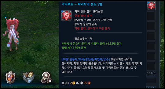 무기, 방어구 크리스탈 슬롯에 장착 가능한 아티팩트가 추가됩니다.