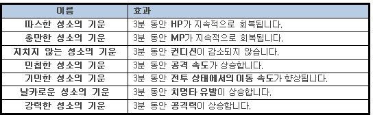 ▲ 성소의 효과는 랜덤으로 발동되며 중복으로 적용되지