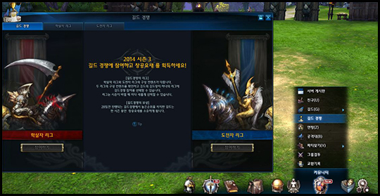 길드경쟁은 길드장이 두 리그 중 하나의 리그만 선택하여 참여할 수 있습니다.