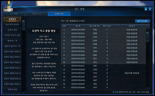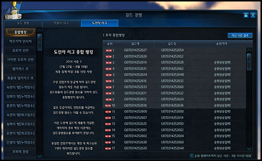 길드 경쟁 컨텐츠의 순위