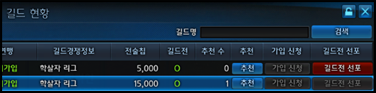 <길드전 선포가 가능한 길드 현황창>