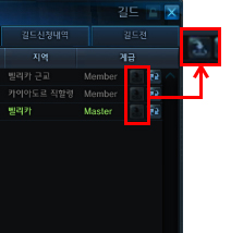 ‘G’키를 눌러 열리는 ‘길드창’의 ‘길드원 목록’에서 현재 적 길드와 전투 중인 길드원들은