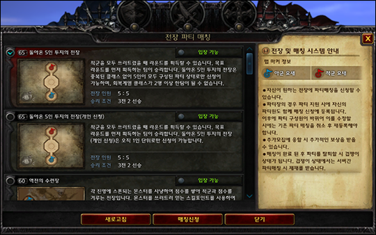 ▲ 돌아온 투지의 전장은 위의 매칭 조건을 만족한 상태에서만 매칭이 가능합니다.