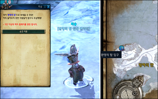 환영의 탑은 ‘얼어붙은 해안’의 ‘빙하의 만’에 위치해 있는 ‘환영의 탑 입장 관리인’을 통해 입장할 수 있습니다.
