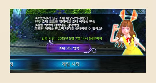 - 초대 코드는 30일 이상 테라에 방문하지 못했던 친구나 테라를 처음 시작하는 친구만 입력할 수 있습니다.