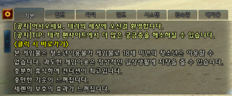 시스템 탭 | 공지, 전투정보 전부, 시스템 정보 전부 |