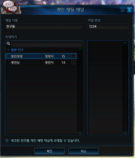 ▲ 친구 목록에서 초대할 친구를 선택해 초대하면 개인 채널 생성 완료!