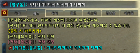 월드 탭 | 공지, 메가폰, 전체, 거래, 길드홍보 |