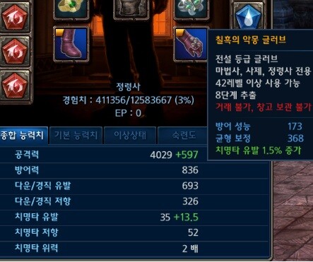 레벨들은 43~45였으며 치명타 효과가 있는게 장갑과 광전사 문장 말고는 또 뭐가있는지 모르겠슴