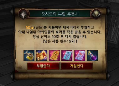 ※ 매 시즌의 최상급 던전에는 오샤르의 부활 주문서가 적용되지 않습니다.