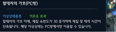 ▲ 새롭게 추가된 PC방 전용 버프 ‘발데라의 가호’