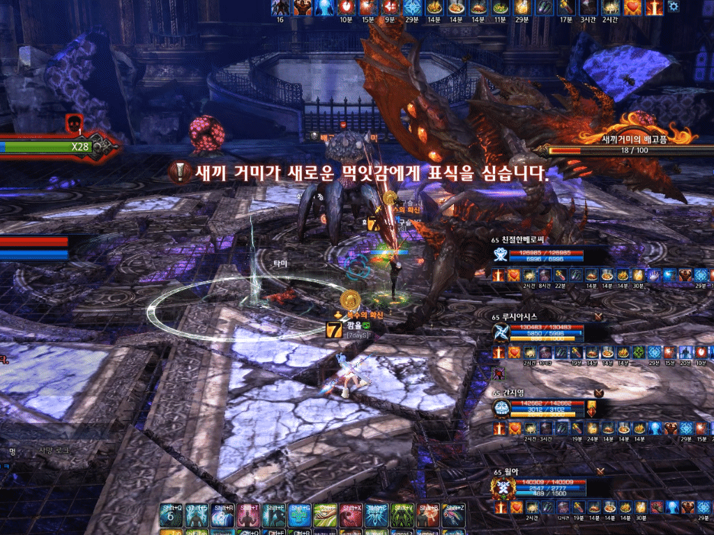 움짤을 잘 보면 저보다 가까이 붙어있던 정령사와 검투사에게 디버프가 적용된것을 볼 수 있습니다.