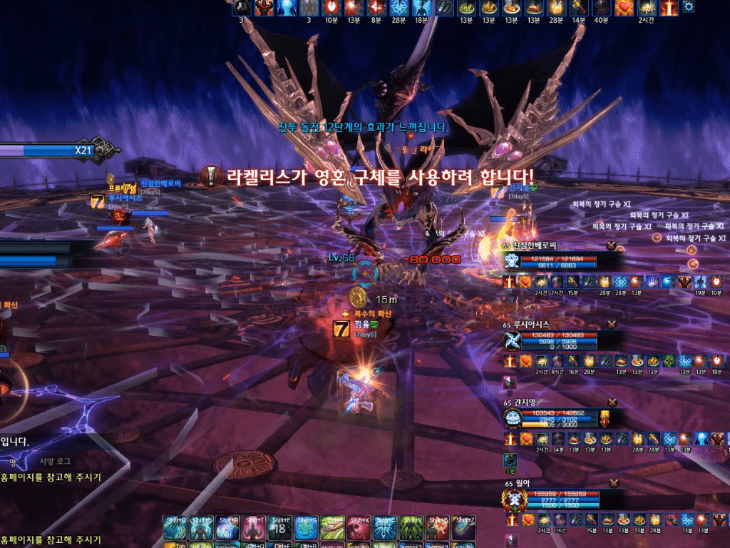 30% 대출혈 패턴 등장시 모든 파티원들은 라켈리스의 정후방에 위치해 밀려나야하며