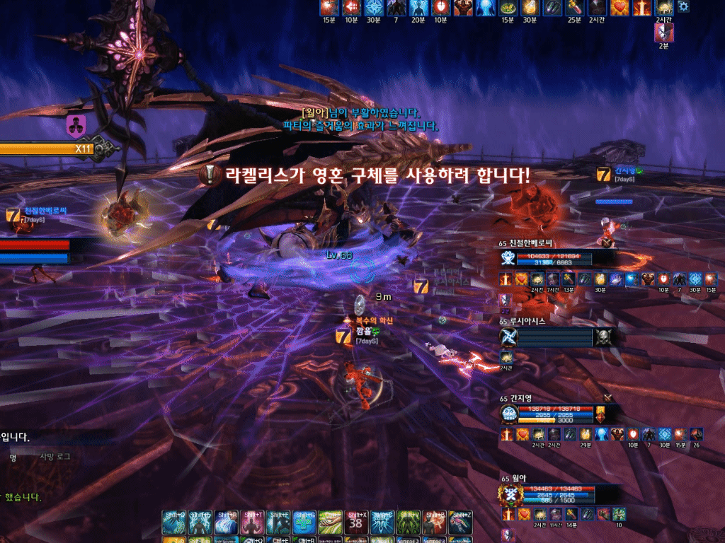 초월한 라켈리스의 체력이 70% 미만으로 떨어질때부터 나오는 패턴입니다.