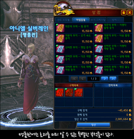 어서 명품관 NPC를 찾아가 보세요.