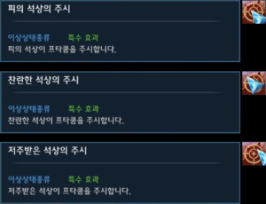 팁: 찍기 피격시 스턴, 정화가능, 방막불가, 회피불가 팁: 돌리기 피격시 밀쳐짐, 방막불가, 회피불가