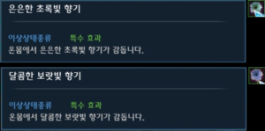 ↑ 플레이어 전체에게 보랏빛 혹은 초록빛 향기 디버프가 생성된다.