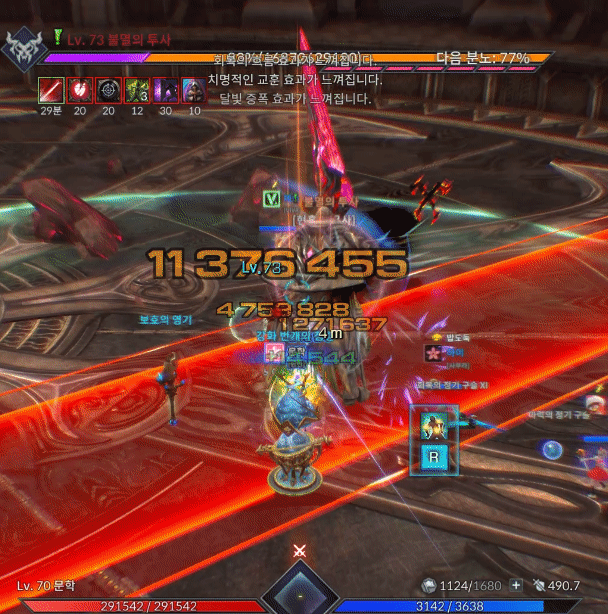 불멸의 투사의 체력이 30%미만으로 떨어질때부터 나오는 패턴입니다.