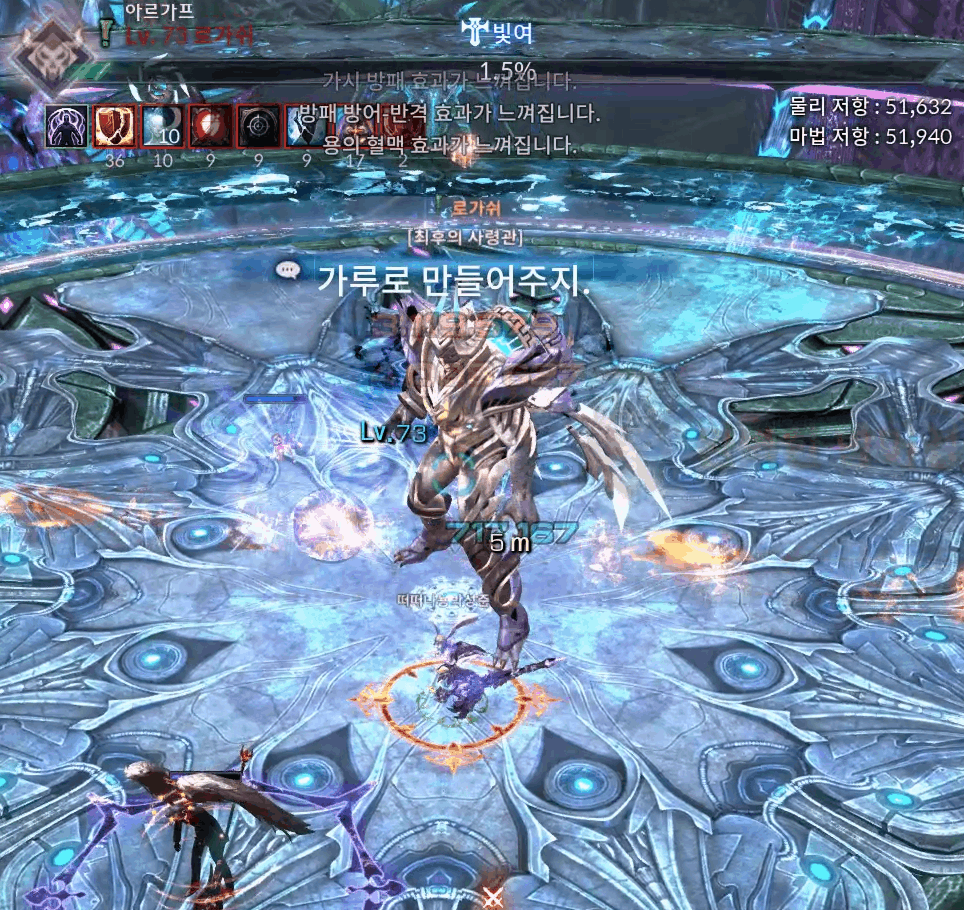 푸른 벼락이 나오면 로가쉬에게 걸린 파란색 3초짜리 디버프(보주 결계)