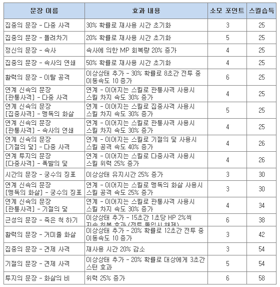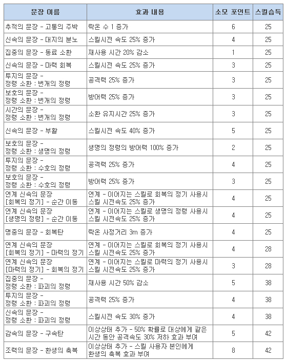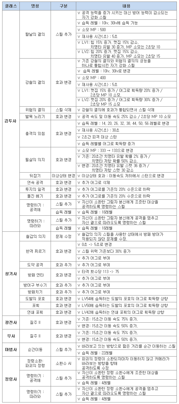 • 최고 레벨 상향에 따라 각 클래스별 신규 스킬 및 문장이 추가됩니다.