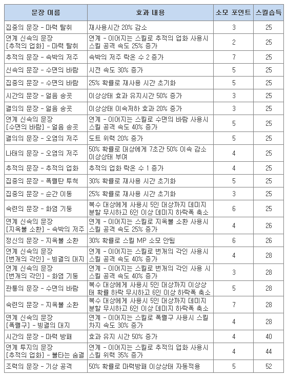 ν 정신의 문장 – 회전베기 소모 MP가 63 감소에서 MP25% 감소로 변경됩니다.