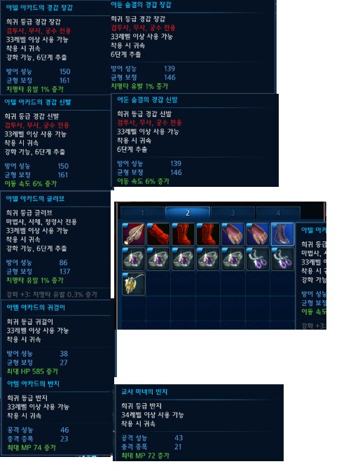 보시는 바와 같이 장비의 경우 같은 33 랩의 어둠 셋트보다 월등한 성능을 가지고 있으며 광택나는 접두어가 붙어 있지 않아도