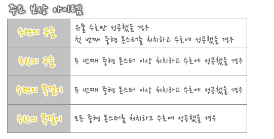 철벽의 수련장에서는 신규 고급 문장으로 교환할 수 있는 구슬 아이템과,