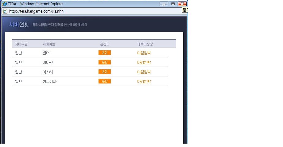 4개 서버 모두 혼잡 상태
