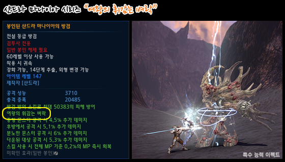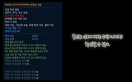 봉인되어 있는 샨드라 마나니아와 철기장 아이템은 수식어 까지만 확인할 수 있으며,