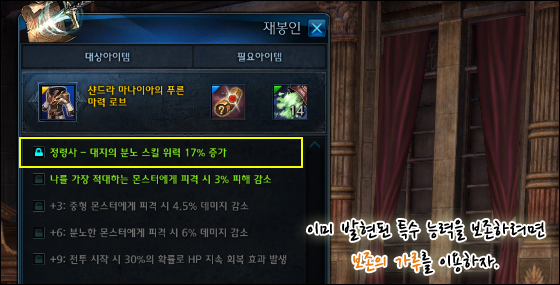 특수 능력을 보존하고 싶다면, 다른 강화 옵션들과 마찬가지로