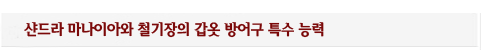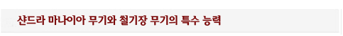 샨드라 마나이아와 철기장의 방어구에 각인되어 있는 특수 능력은