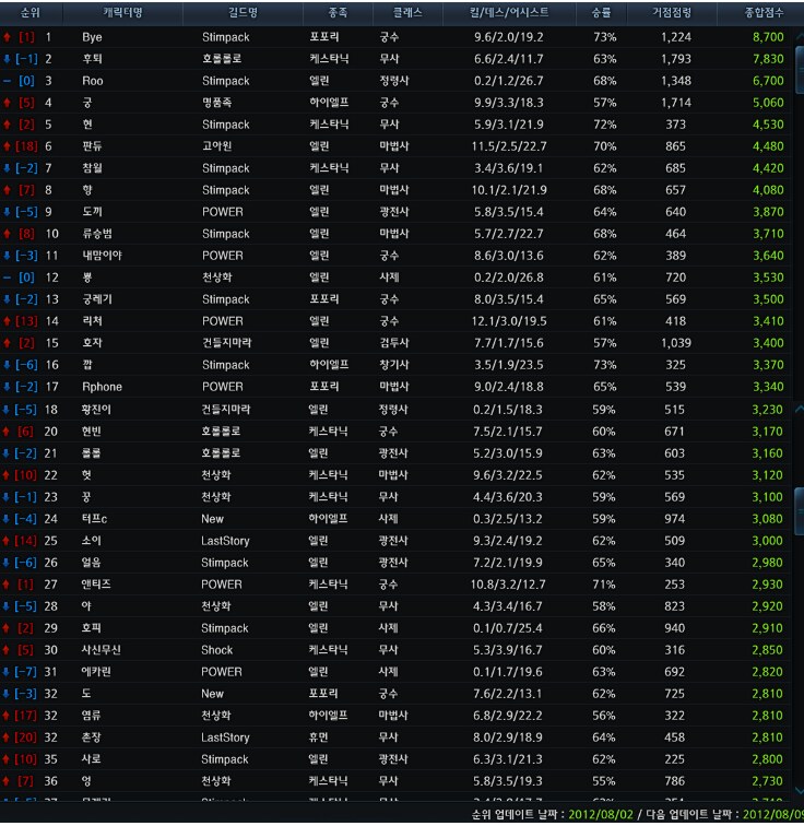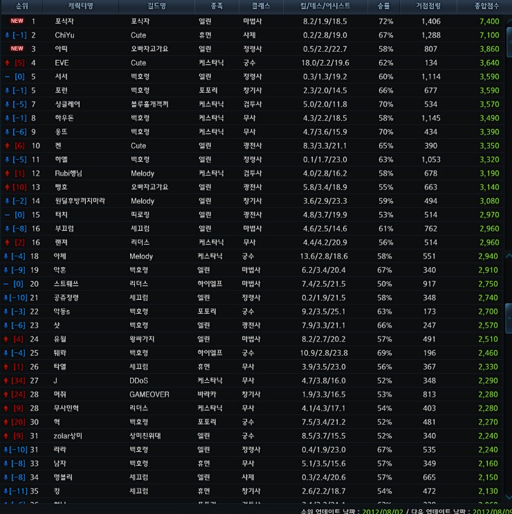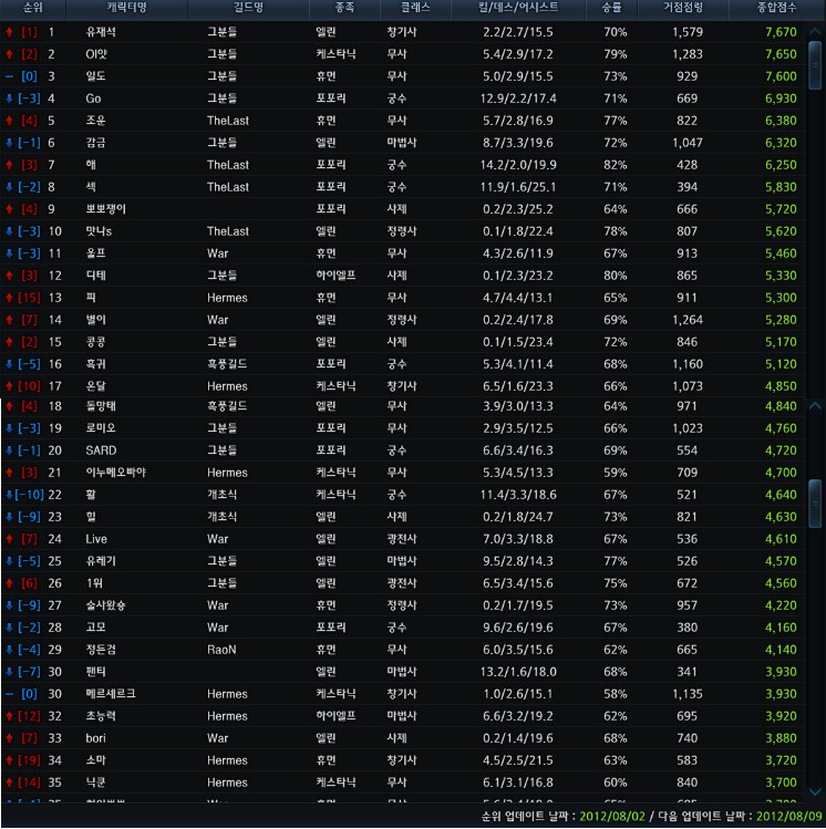 마나안서버 전장 순위 1-30