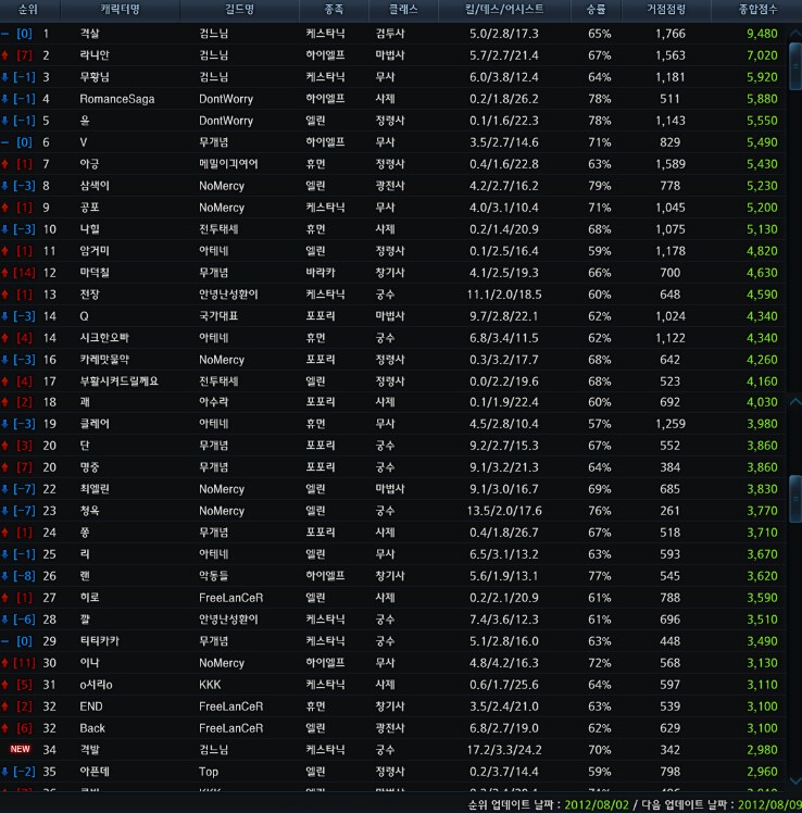무사: 이나 (72%) NoMercy 궁수: 청옥 (76%) NoMercy 마법사: 최엘린(69%) NoMercy